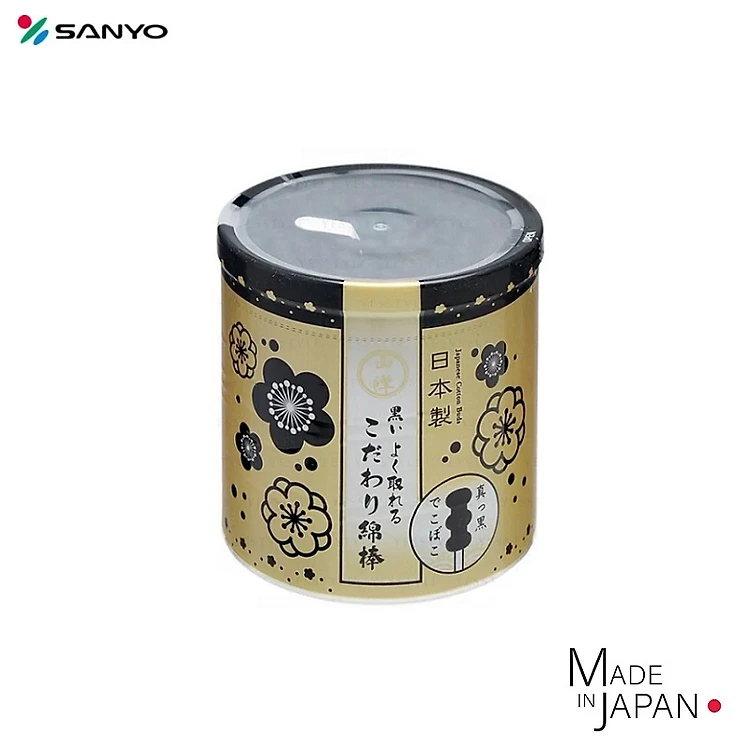 Hộp 150 tăm bông ngoáy tai than hoạt tính Sanyo, 100% bông gòn tự nhiên mềm mại không gây đau rát khi sử dụng - nội địa Nhật Bản