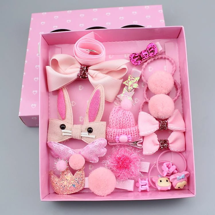 Bộ SP gồm : 1 dây treo , 6 dây buộc tóc , 2 kẹp bướm nhí , 7 kẹp nhỏ , 2 kẹp lớn