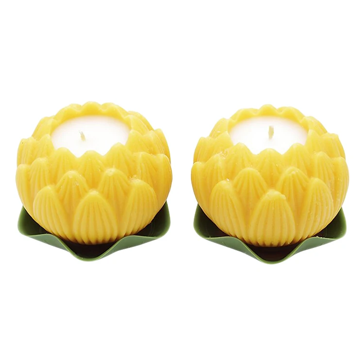 Hộp 2 Nến Thơm Hoa Sen Lớn Quang Minh Candle NQM2547 (Vàng)