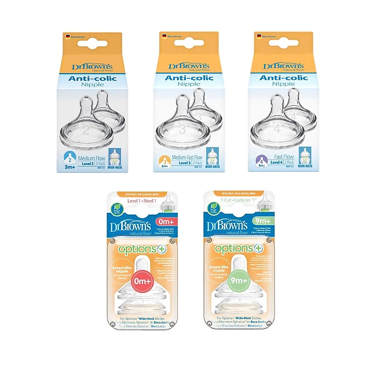Hộp 2 núm ty thay thế bình sữa Dr.Brown's cổ rộng dòng Options Plus