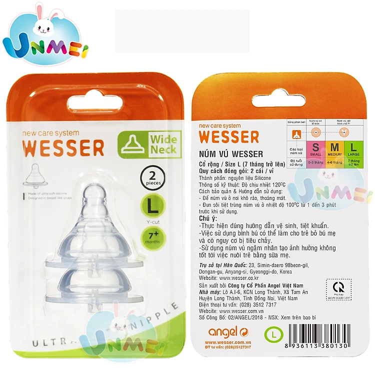 Hộp 2 Núm Ty Wesser Cổ Rộng (Size L - Trẻ Trên 7 Tháng)
