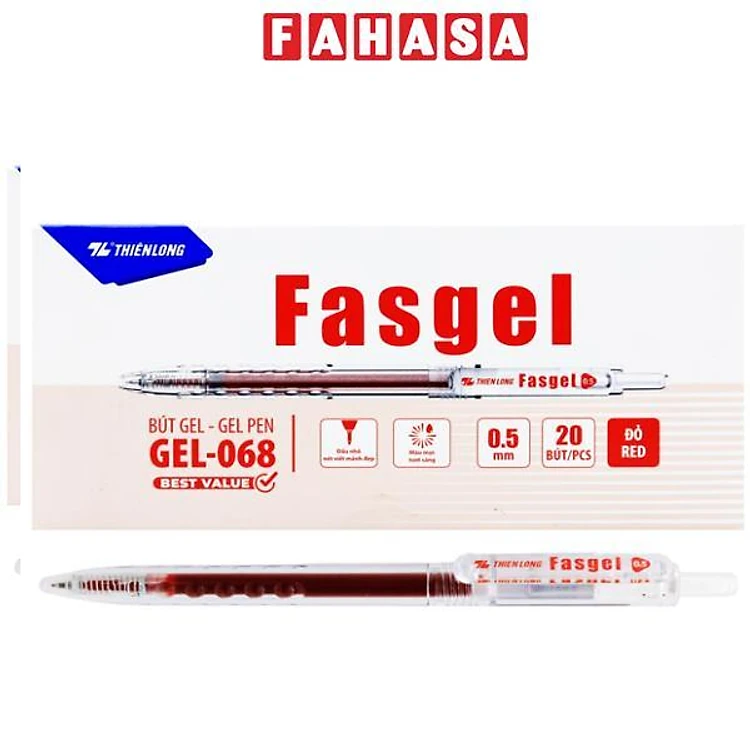 Hộp 20 Bút Gel 0.5 mm - Thiên Long Gel-068 - Mực Đỏ
