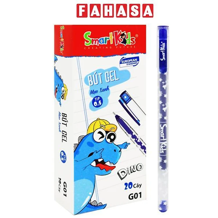Hộp 20 Bút Gel Dino 0.5 mm - Smart Kids G01 - Mực Xanh