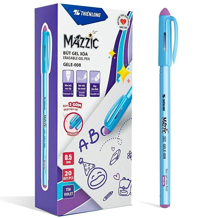 Hộp 20 Bút Gel Xóa Được 0.5 mm - Mazzic Thiên Long GELE-008 - Mực Tím