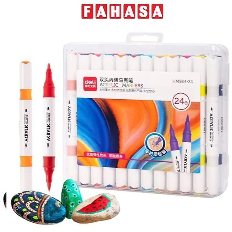 Hộp 24 Bút Màu Acrylic 2 Đầu - Deli HM924-24