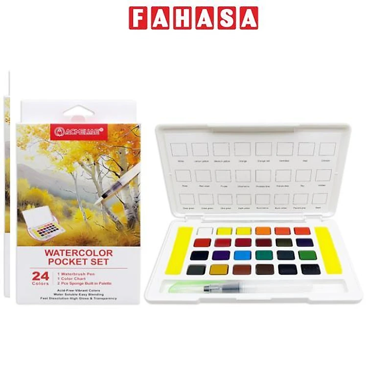 Hộp 24 Màu Nước Dạng Nén Kèm Cọ - Acmeliae WCB-6024