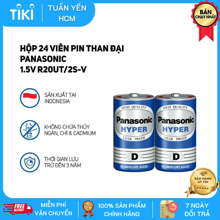 Hộp 24 viên pin than đại Panasonic 1.5V R20UT/2S-V (Xanh) - Hàng Chính Hãng