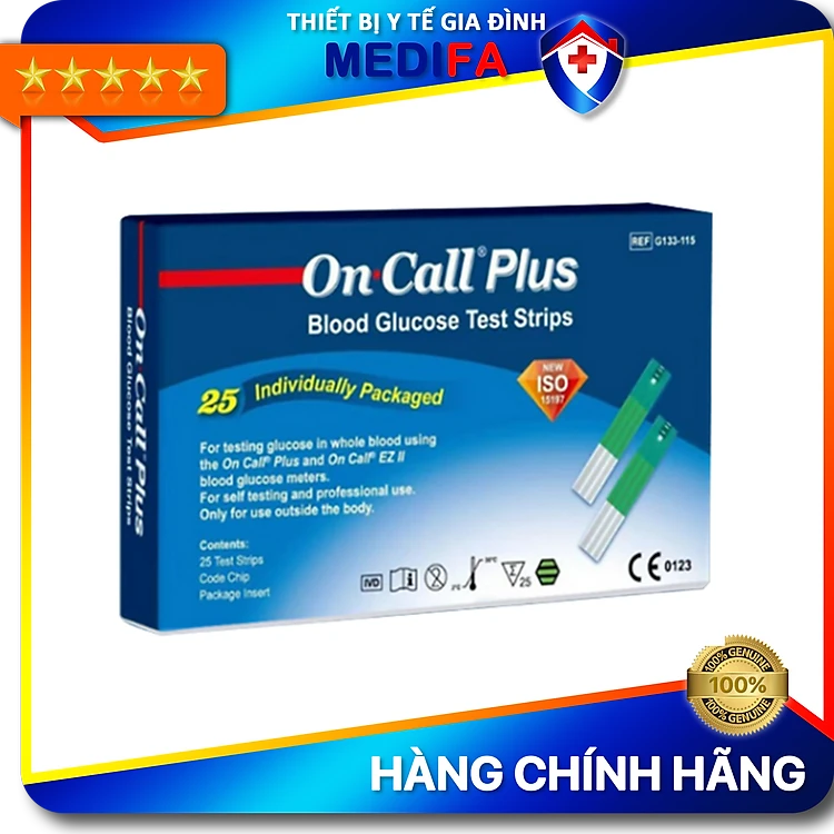 Hộp 25 Que Thử Đường Huyết On Call Plus Có Túi Thiếc Đựng Riêng Từng Test, Chính hãng ACON