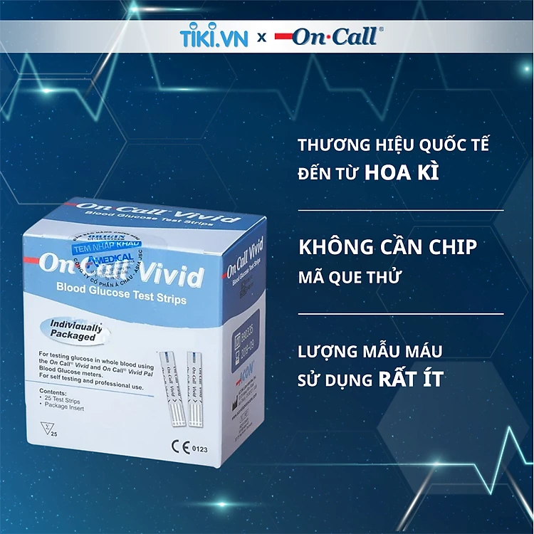 Hộp 25 Que Thử Đường Huyết On Call Vivid Loại Rời Trong Túi Nhôm