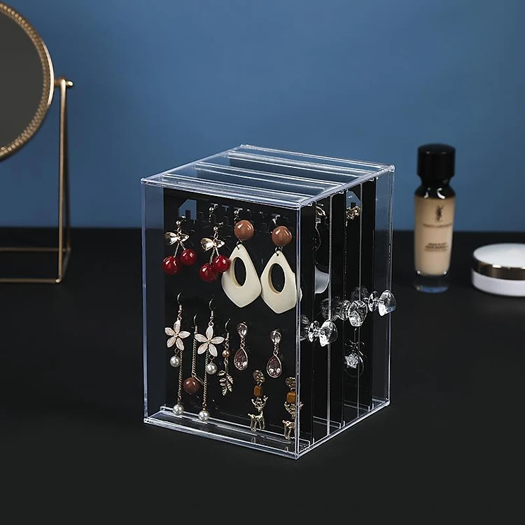 Hộp 3 khay treo trang sức khuyên tai mica trong suốt (khay trong và khay đen giao ngẫu nhiên)