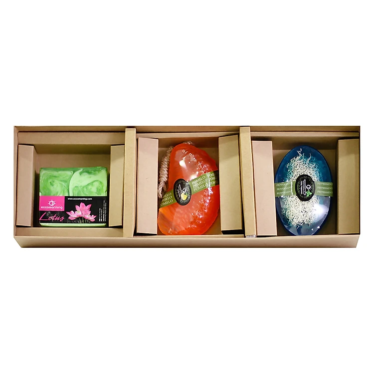 Hộp 3 Xà Bông Thiên Nhiên Handmade Eccomorning SBFA - Hình Vuông hương Hoa Sen + Hình Trái Cây hương Bưởi + Hình Thuyền hương Bạc Hà (100g/Bánh)
