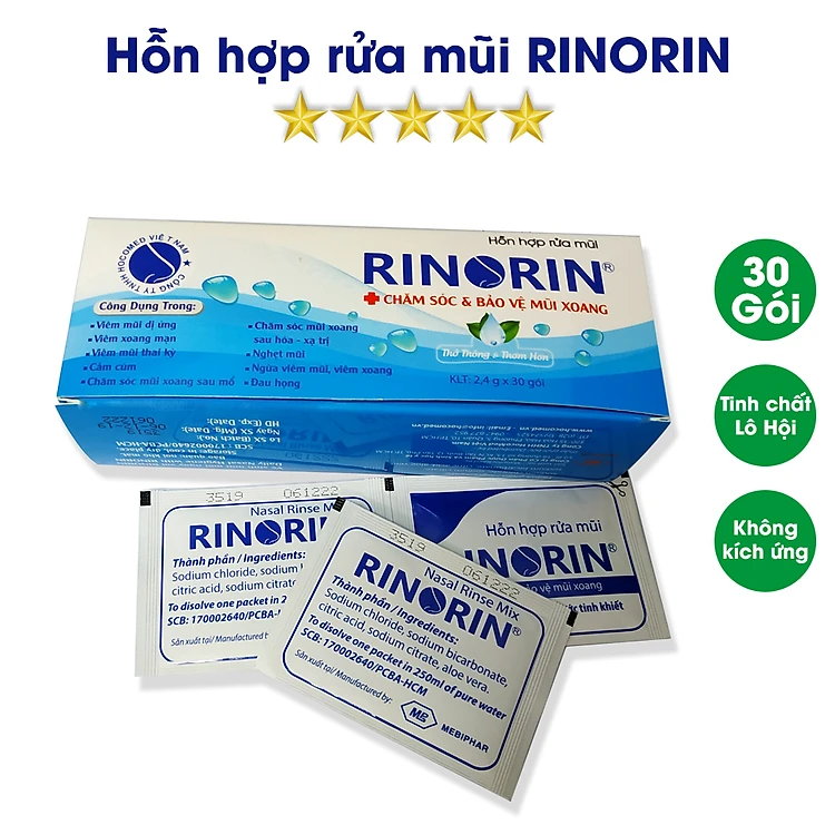 Hỗn hợp Rinorin không đơn thuần là muối thông thường bởi vì chứa các yếu tố vi lượng và chiết xuất cây lô hội (giúp làm ẩm). Hỗn hợp ở dạng khô, thiết kế nhỏ gọn khi pha với nước tạo thành dung dịch đẳng trương để rửa mũi với bình rửa mũi xoang Rinorin hoặc súc họng. Đặc biệt, sản phẩm được kiểm soát ở pH 6.0 – 6.5 tương thích với pH của xoang, mũi người Việt giúp tạo cảm giác dễ chịu khi rửa mũi, không bị kích ứng hoặc gây khó chịu.