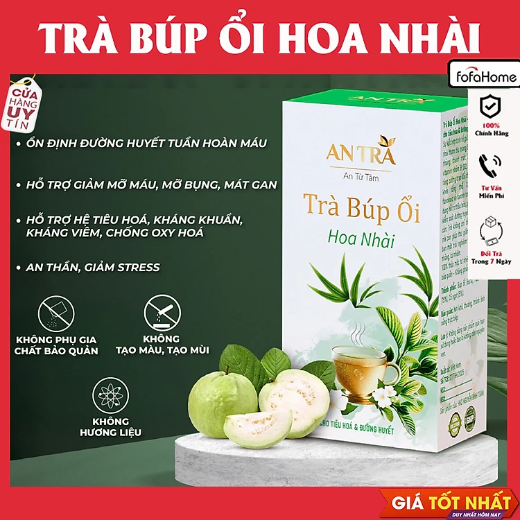 Hộp 30 Gói Trà Búp Ổi Hoa Nhài Giúp Giảm Cân, Tiêu Mỡ Nhanh, Đẹp Da, Ngăn Ngừa Lão Hóa An Thần Giảm Stress An Toàn Thiên Nhiên