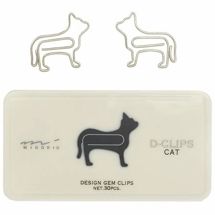 Hộp 30 Kẹp Giấy D-Clip Midori 43185 - Hình Mèo