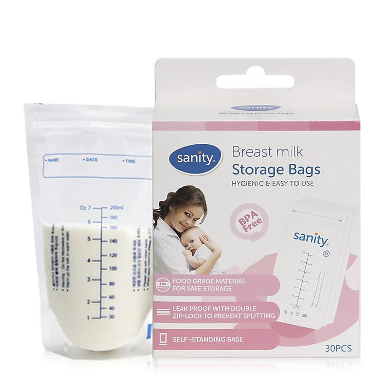 HỘP 30 TÚI TRỮ SỮA CHÍNH HÃNG SANITY CỦA ĐỨC TÚI 2 ZIPPẺ 210ML, KHÔNG CHỨA BPA
