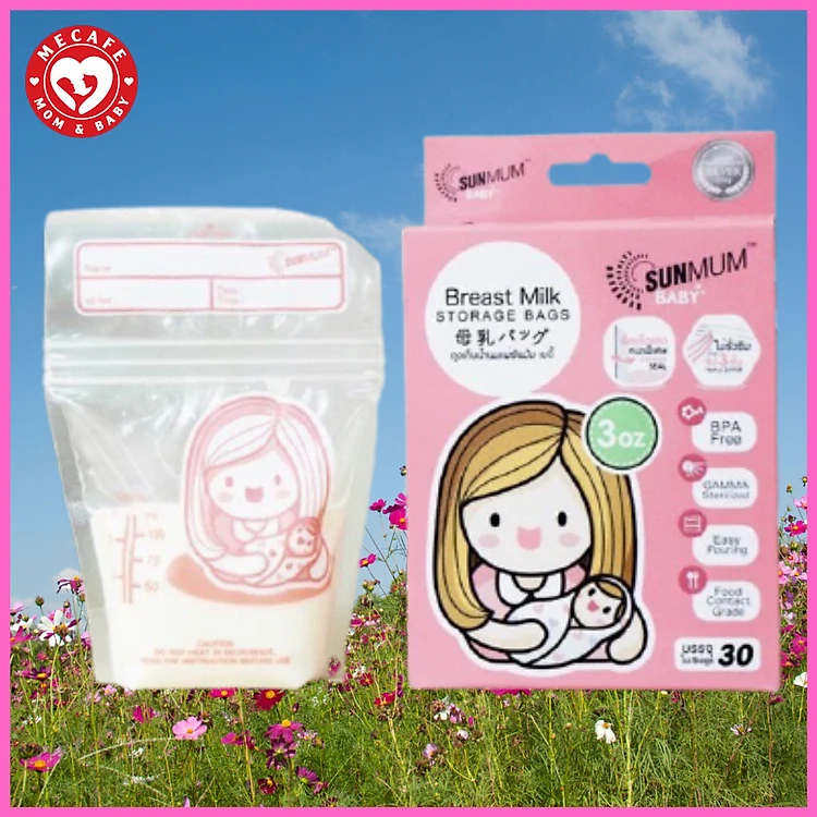 Hộp 30 túi trữ sữa Sunmum mini 100ml Thái Lan (có tem niêm phong) tặng 2 zipper 15x20cm