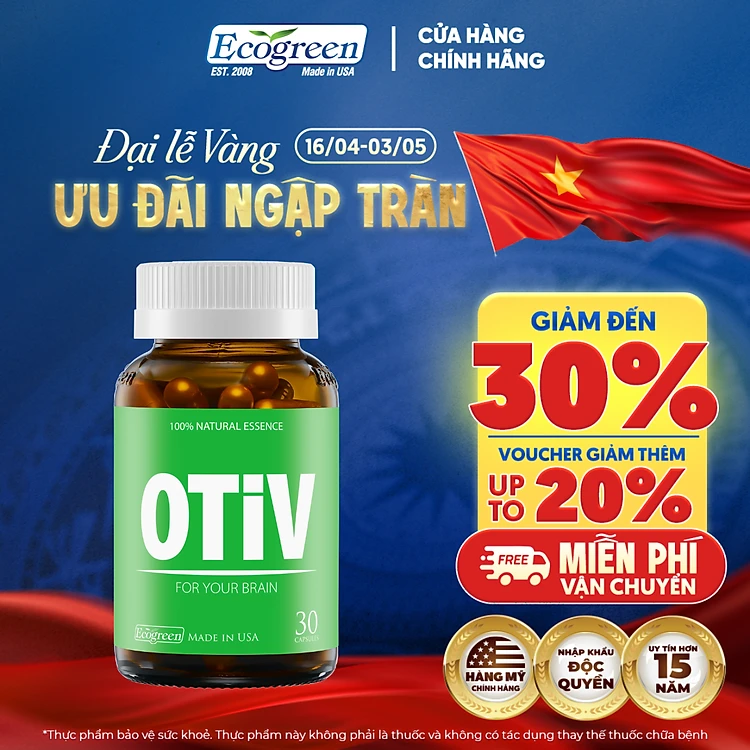 [Hộp 30v] Viên Uống Bổ Não OTIV Ecogreen Giảm Đau Đầu, Mất Ngủ, Tăng Trí Nhớ & Hoạt Huyết Não