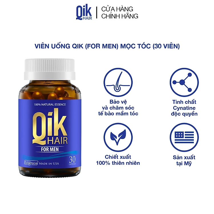 [Hộp 30v] Viên Uống Kích Thích Mọc Tóc Qik Hair For Men Ecogreen Giảm Rụng Tóc Cho Nam