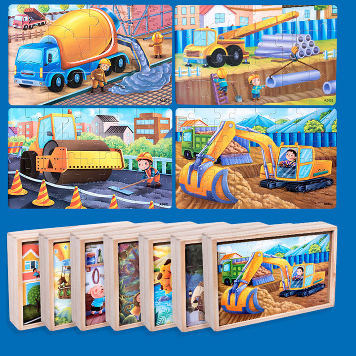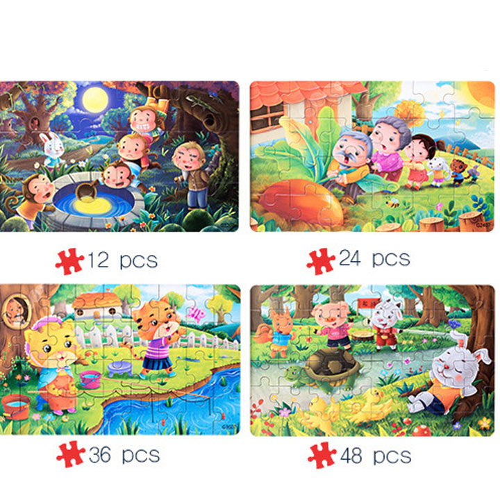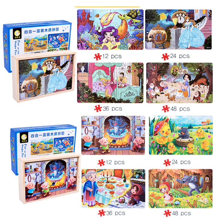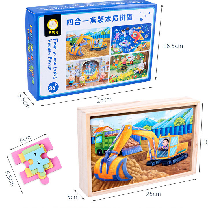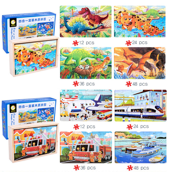 Hộp 4 tranh ghép JX14 các tranh 12, 24, 36, 48 miếng ghép đồ chơi giáo dục