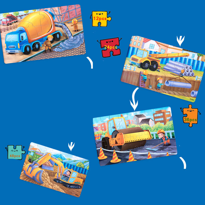 Bộ tranh gồm 4 tranh khác nhau với thứ tự các mảnh ghép cho từng tranh 12, 24, 36 và 48 mảnh ghép