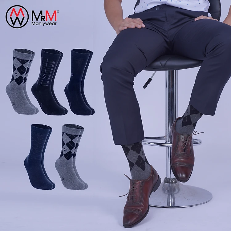 Hộp 5 đôi tất vớ đi giày tây nam công sở cổ cao MRM Manlywear - mix 4 màu, sợi cotton cao cấp thoáng khí, chống hôi chân