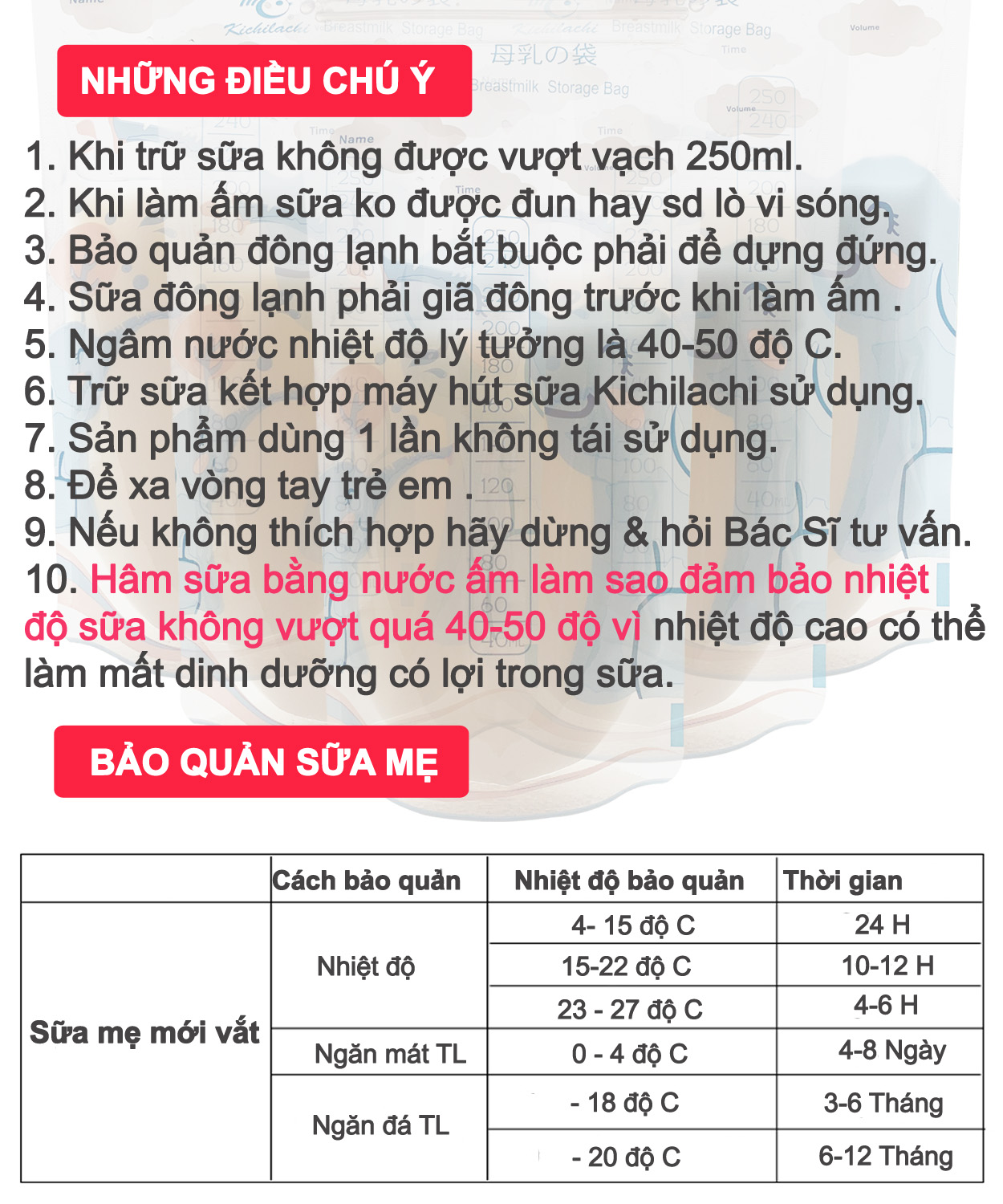 HỘP 50 TÚI TRỮ SỮA KICHILACHI 250ML