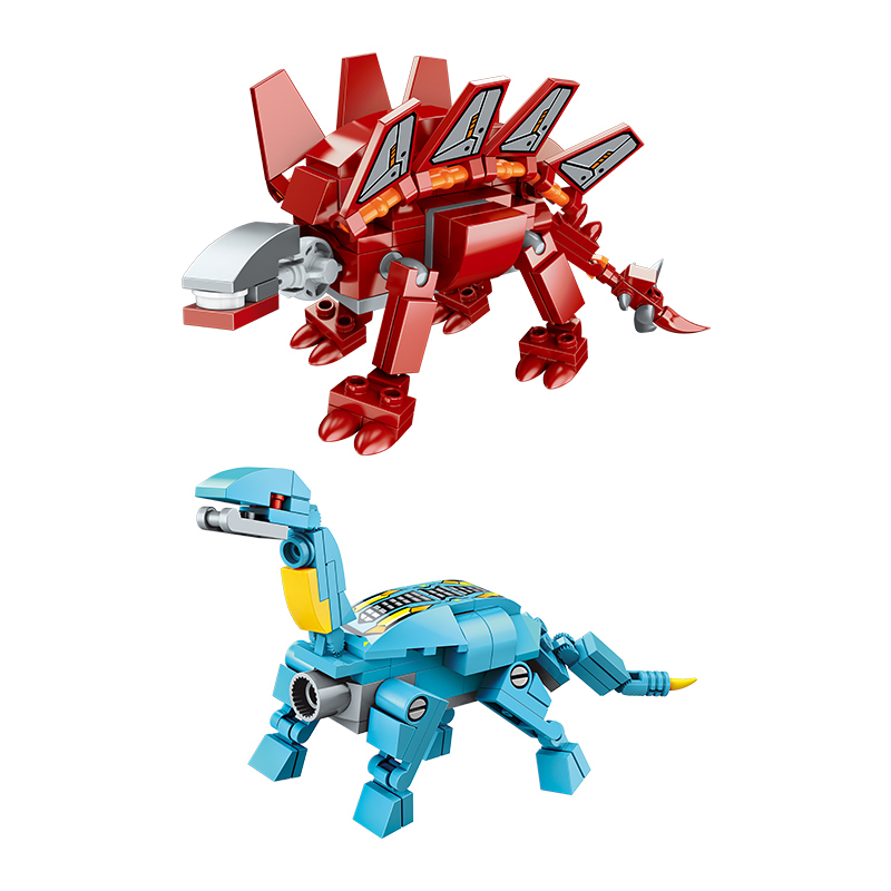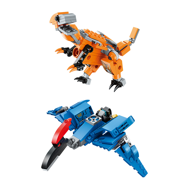 - Lắp ráp tạo thành 6 loại khủng long khác nhau, ghép cả 6 mô hình tạo thành Robot lớn