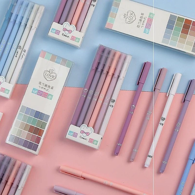 Hộp 6 Bút gel mực đen Morandi bút màu retro ngòi 0.5mm dễ thương ST463