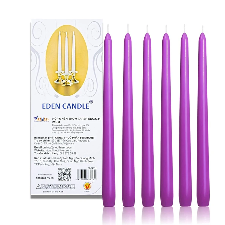 Hộp 6 Nến Thơm Taper Eden Candle FTRAMART EDC2331 (25cm) - Tím