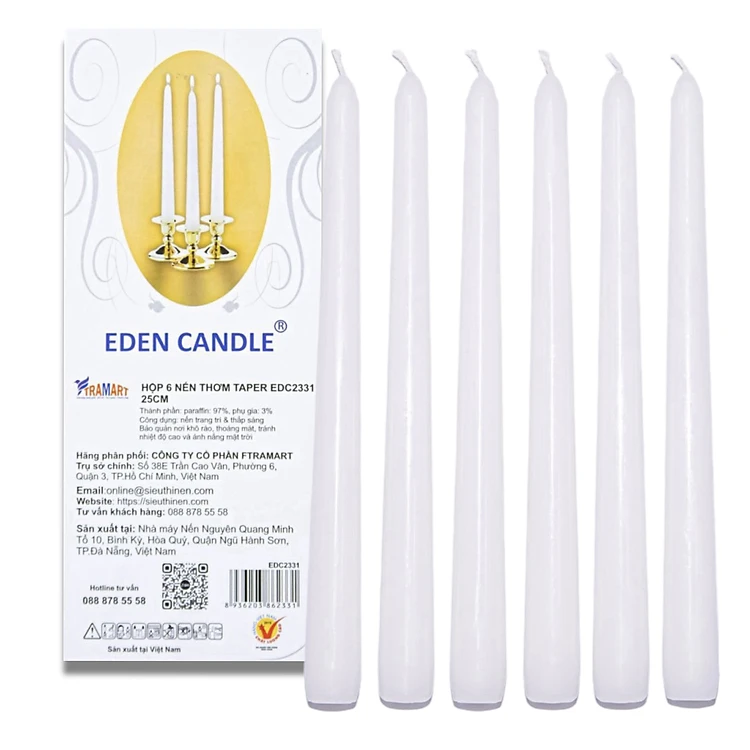 Hộp 6 Nến Thơm Taper Eden Candle FTRAMART EDC2331 cao 25cm (Trắng), phù hợp nhiều không gian trang trí