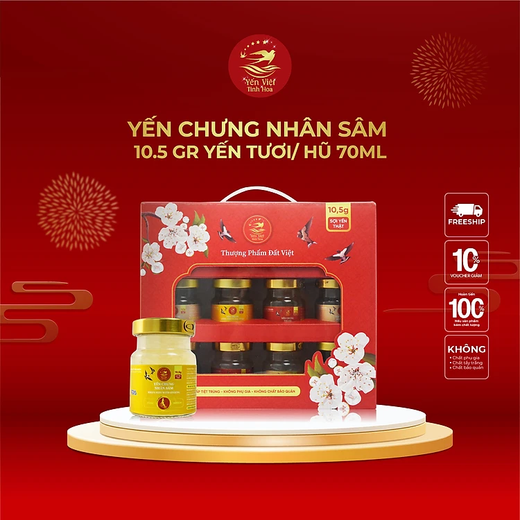 Yến Chưng Nhân Sâm cao cấp 10,5 gram Yến Việt Tinh Hoa - Cải thiện hệ miễn dịch - Tăng sức đề kháng - Hàng chính hãng