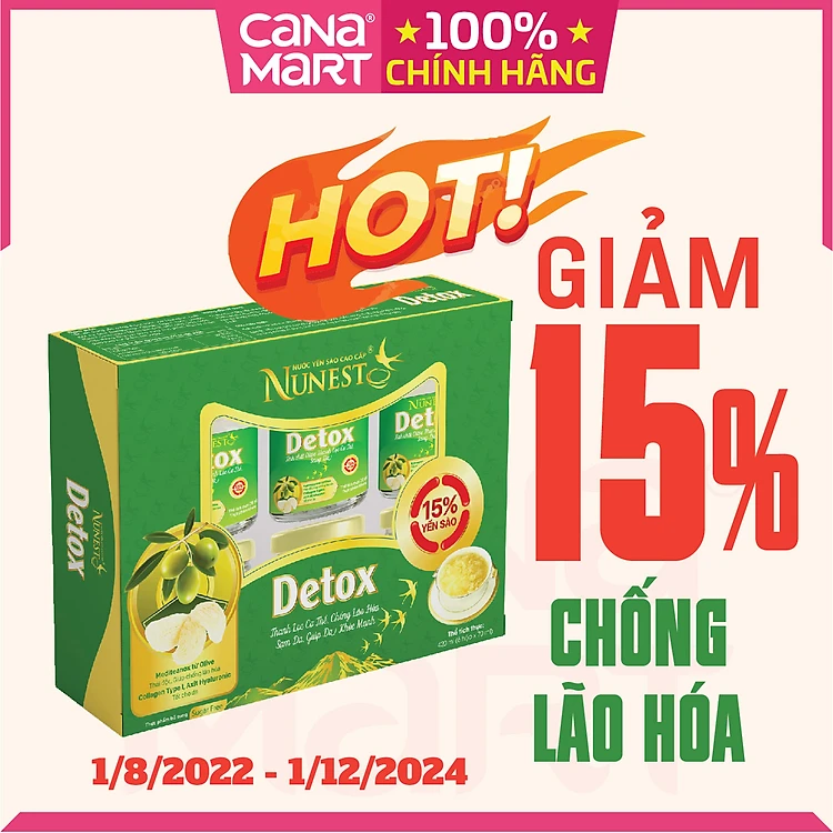 [Hộp 6 lọ x 70ml] Nước yến sào cao cấp Nunest DETOX thanh lọc cơ thể, trắng da, khỏe đẹp