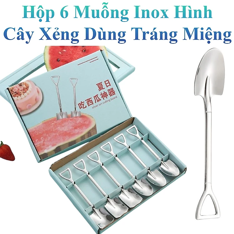 Hộp 6 Muỗng Inox Hình Cây Xẻng Dùng Tráng Miệng Sang Trọng