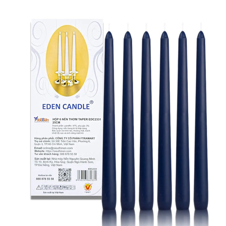 [Hộp 6 nến] Nến thơm taper Eden Candle FTRAMART EDC2331 (Xanh navy), cao 25 cm, phù hợp tất cả các chân nến theo tiêu chuẩn nến taper