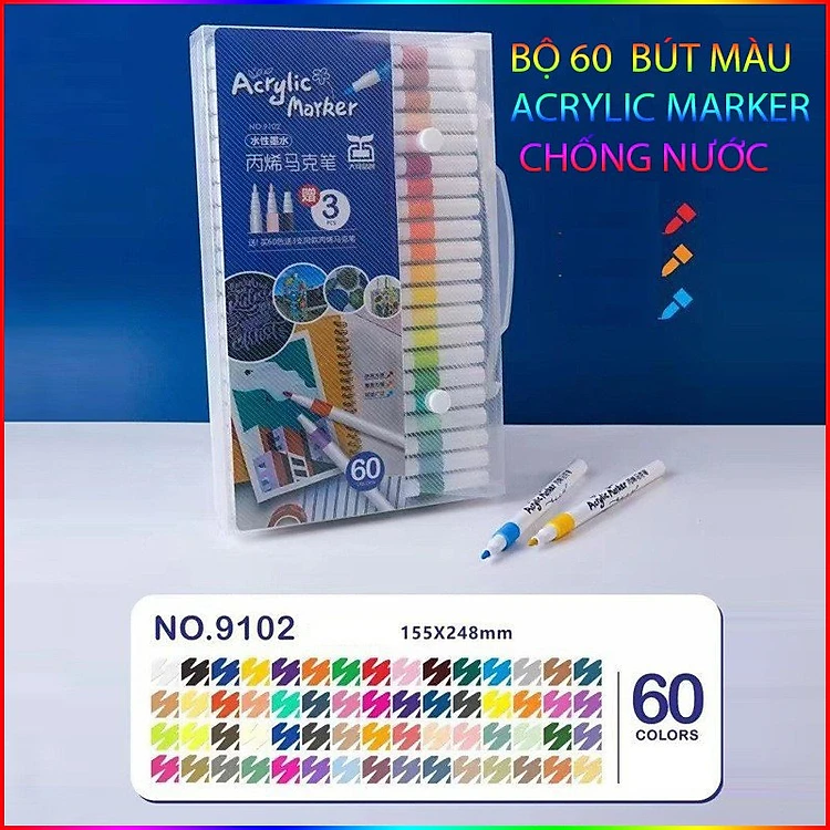Hộp 60 Bút Màu Acrylic Marker Chống Nước Vẽ Trên Mọi Chất Liệu 20X13Cm
