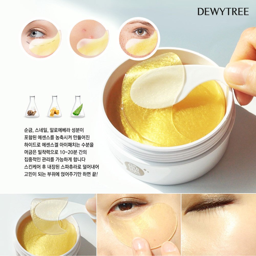 Vàng từ lâu đã là nguyên liệu làm đẹp của các nữ hoàng, giữ nét thanh xuân lâu dài cho họ, giúp chống lão hóa và giảm thâm, bọng mắt hiệu quả. Và Mặt nạ mắt Dewytree Prime Gold Snail Eye Patch còn được dùng cho các vết thâm do mụn. Đắp mặt nạ lên vùng thâm mụn để giúp làn da bạn được trắng sáng mịn màng hơn nhé.