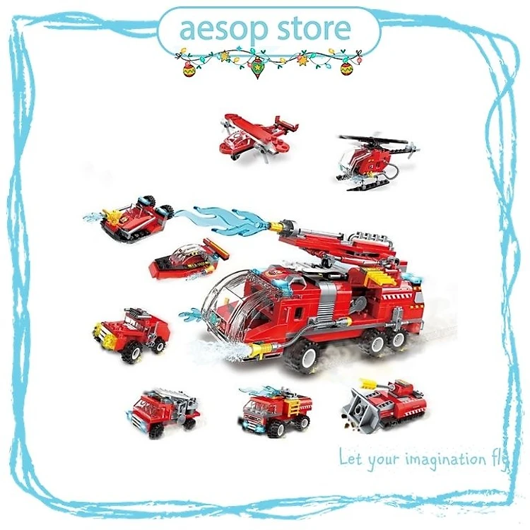 Hộp 8 bộ đồ chơi lắp ráp Biệt đội cứu hỏa vòi rồng 8in1 Qman 1805 (313 chi tiết)