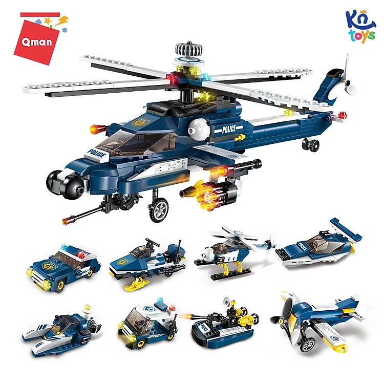 Hộp 8 bộ đồ chơi lắp ráp Trực thăng tấn công 8in1 Qman 1801 (381 chi tiết)