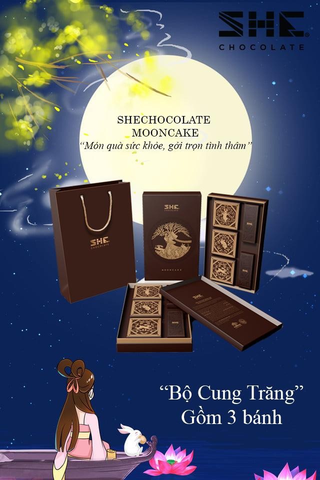 Tựa theo những câu chuyện truyền thuyết dân gian Việt Nam, quay ngược ký ức tuổi thơ, bộ quà tặng SHE Chocolate Moon Cake “CUNG TRĂNG” sẽ lần lượt kể về sự tích Hằng Nga, Thỏ Ngọc, Chú Cuội - những công dân đầu tiên chạm đến cung trăng quê hương Việt Nam; và dần dần sự tích “BánhTrung Thu Việt Nam” cũng được hé lộ qua cuốn truyện trong bộ quà THE MOON đầy ý nghĩa này.