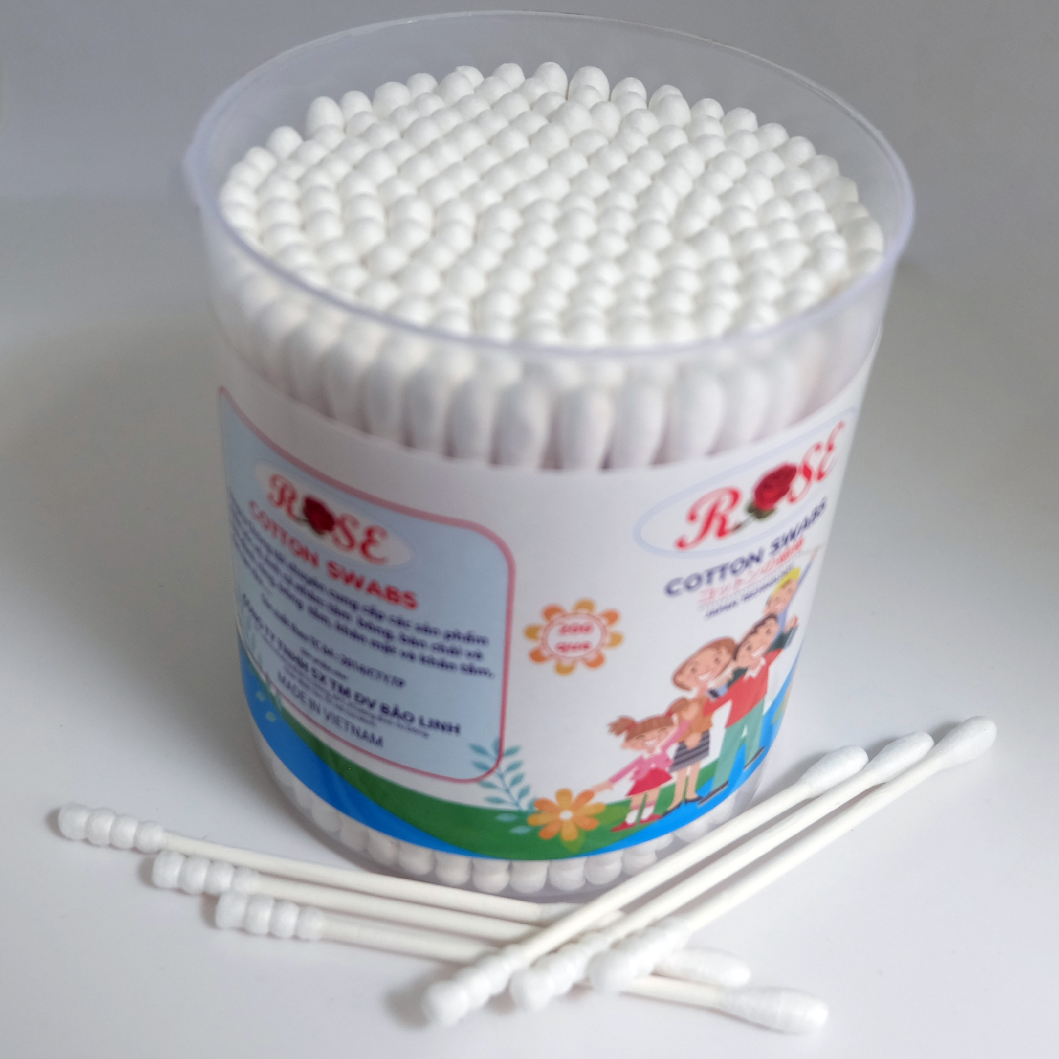 Hộp tăm bông ráy ( ngoáy) tai người lớn ROSE hộp tròn que giấy cứng (200 cây) - Hàng chính hãng