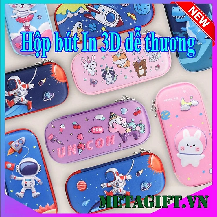 Hộp bút 3D, hộp đựng bút cho bé trai bé gái trẻ em học sinh tiểu học lớp 1 in nổi siêu cute dễ thương