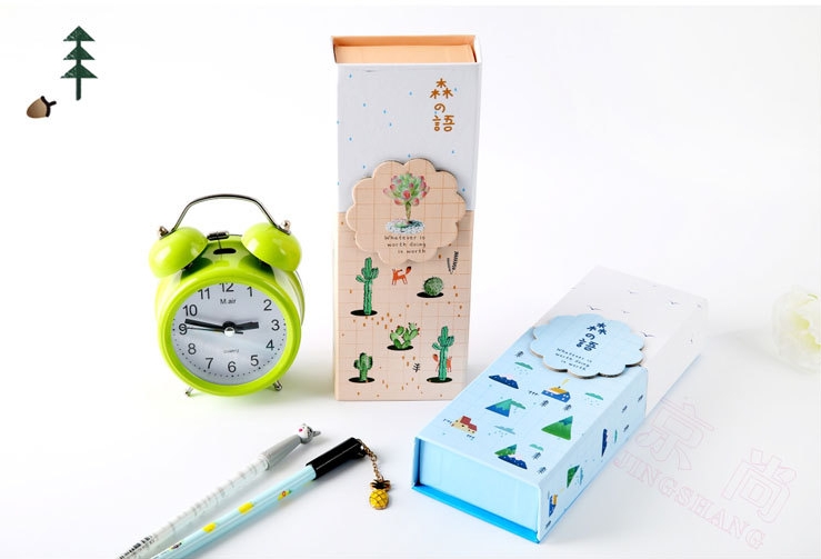Hộp bút sở hữu thiết kế đẹp mắt, bề mặt của mỗi hộp được phủ một lớp màng, giống như bề mặt của bức tranh với họa tiết rừng cây dễ thương, chắc chắn sẽ mang đến sự thích thú và tăng thêm cảm hứng cho bạn trong học tập cũng như trong công việc. Kiểu dáng hộp gọn nhẹ, thuận tiện khi cất giữ trong cặp xách, ba lô để mang theo bên người hoặc đặt trực tiếp trên bàn học để trang trí mà không chiếm nhiều diện tích.