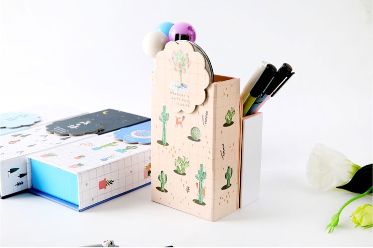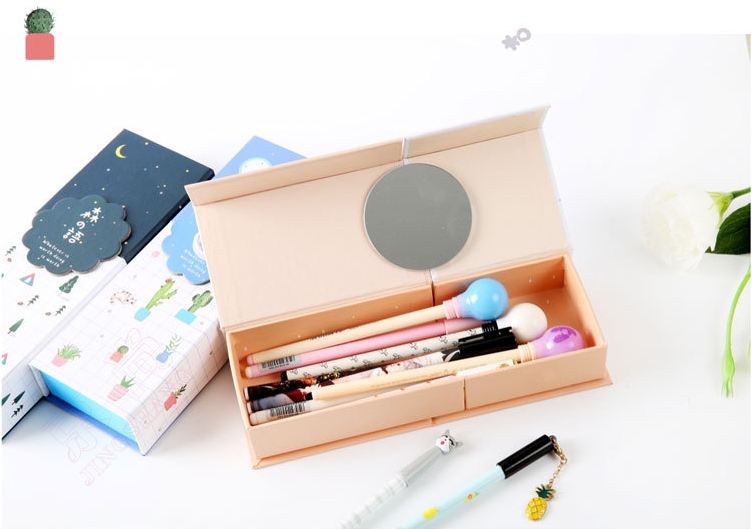 Hộp bút đa năng họa tiết rừng cây được làm từ chất liệu bìa cứng, nam châm bền đẹp, chắc chắn. thân thiện với môi trường. Thiết kế hộp sáng tạo: vừa làm hộp đựng bút thông thường với 1 ngăn lớn, vừa làm kệ cắm bút với 2 ngăn trên và dưới, có thể đóng/mở linh hoạt với khóa nam châm rất tiện lợi. Hộp còn trang bị thêm gương soi rất tiện dụng, thích hợp cho các bạn gái có thể trang điểm, làm đẹp mọi nơi.