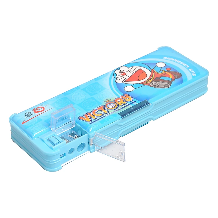 - Hộp bút có 2 ngăn và 1 hốc chuốt bút chì (gồm 2 lưỡi chuốt). Hộp bút có thể đựng được nhiều dụng cụ học sinh như: thước kẻ, bút bi, bút chì, gôm.
