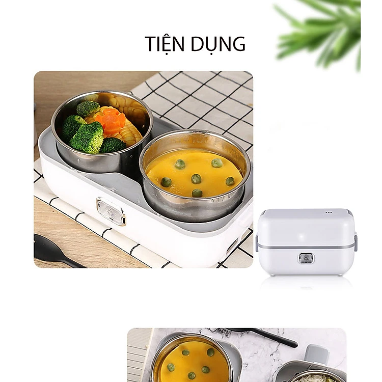 Hộp cơm cắm điện hai tầng, hộp cơm hâm nóng 2 BÁT INOX, giữ nhiệt thích hợp cho dân văn phòng KitAcoom, hàng nhập khẩu chính hãng cao cấp