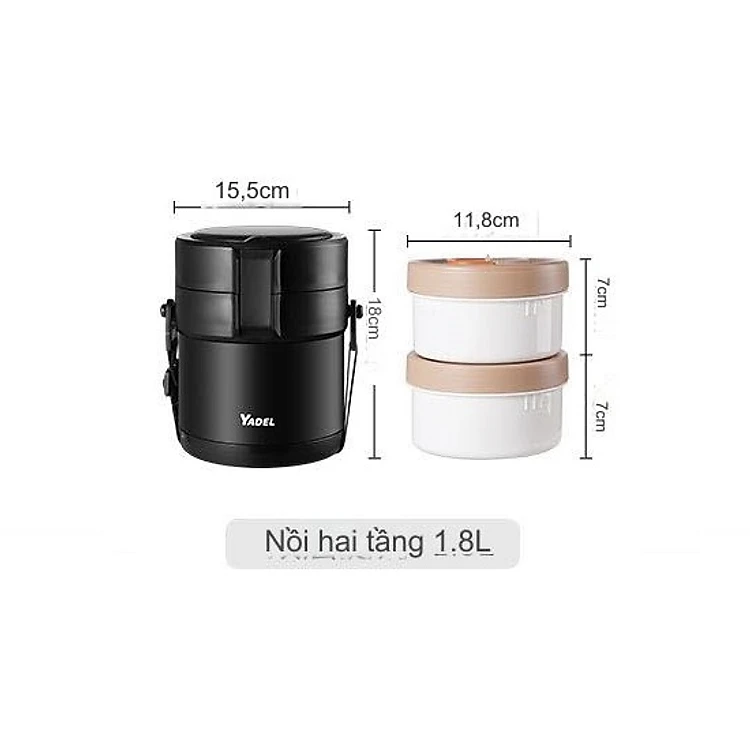 Hộp Cơm Giữ Nhiệt YADEL phong cách Nhật Bản, Inox 304 Chống Tràn Cách Nhiệt 6 Lớp, Chống Bỏng 2 Lớp, Giữ nhiệt lên tới 12h + Tặng đũa thìa inox - Hàng nhập khẩu