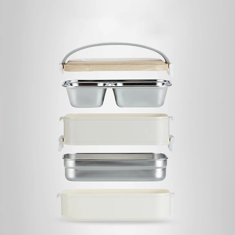 Hộp Cơm Nắp Gỗ INOX304 Phong Cách Nhật Tặng Kèm Hộp Đựng Soup có Thìa