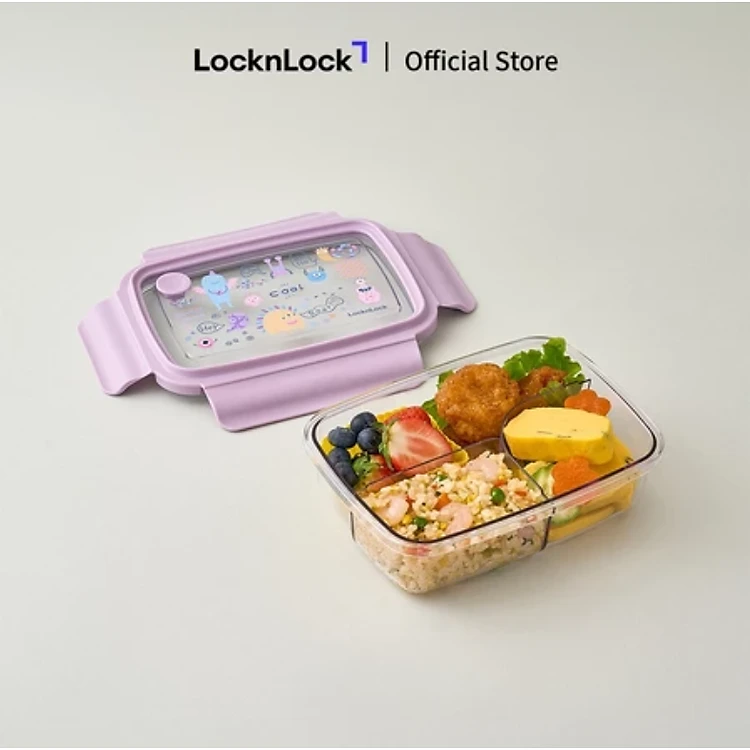 Hộp cơm nhựa 3 ngăn trong suốt LocknLock 750ml - LCB501 và 1L - LCB502 - 2 màu (Tím, Xanh)