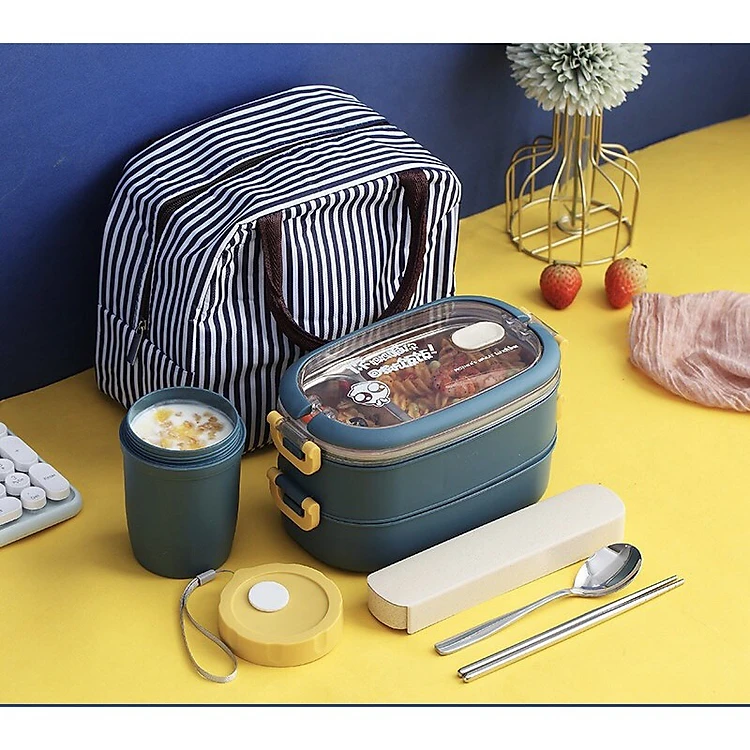 Hộp Cơm Văn Phòng Giữ Nhiệt 2 Lớp 2 Tầng Tiện Lợi Kèm Hộp Đựng Canh Soup và Bộ Đũa Thìa INOX – Chất Liệu INOX304An Toàn Cho Sức Khỏe – Hàng Chính Hãng MINIIN- Tặng Túi Đựng Cơm