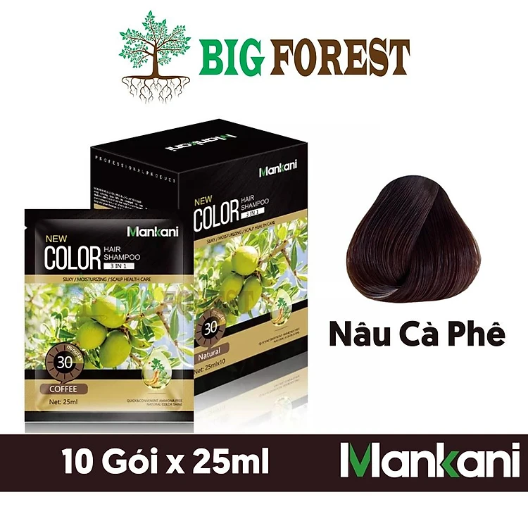 Hộp Dầu Gội Nhuộm Tóc, Thảo Dược Màu Nâu Cà Phê, Mankani [250ml - Chính Hãng]